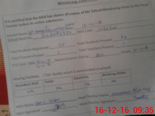 | Certified that this School was Inspected by the Undersigned MEA/DMO Today and the Information Stated Above is as Per Record. | |||||