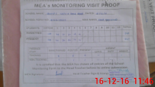 | Attendance Register | Head Teacher | MEA with School | Visit Proof |