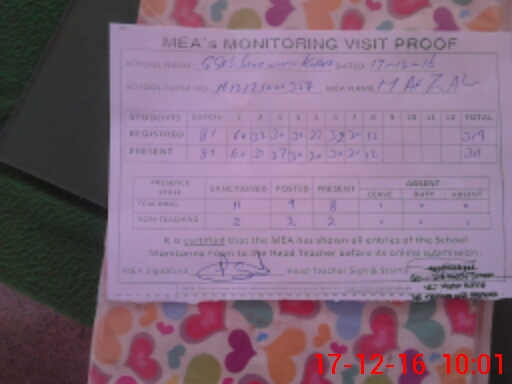 | Certified that this School was Inspected by the Undersigned MEA/DMO Today and the Information Stated Above is as Per Record. | |||||