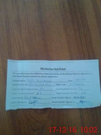 | Attendance Register | Head Teacher | MEA with School | Visit Proof |