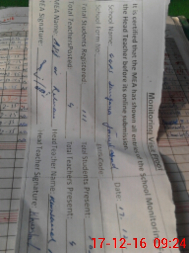 | Attendance Register | Head Teacher | MEA with School | Visit Proof |
