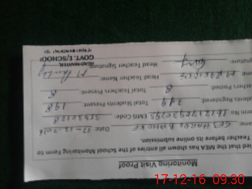 | Attendance Register | Head Teacher | MEA with School | Visit Proof |
