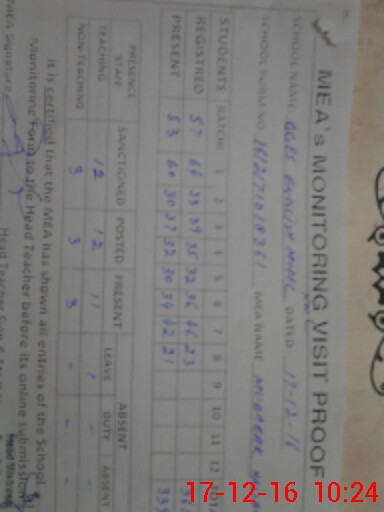 | Certified that this School was Inspected by the Undersigned MEA/DMO Today and the Information Stated Above is as Per Record. | |||||