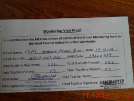 | EMIS Code: 39220454 | Name of School: GPS FAZAL DIN | |||