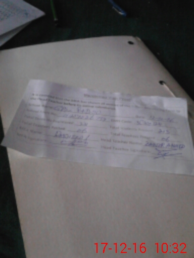 | Name: RI**** SA**** Designation: (School Headmaster's/Headmistress's) PST Phone/Cell Number: 03**** |