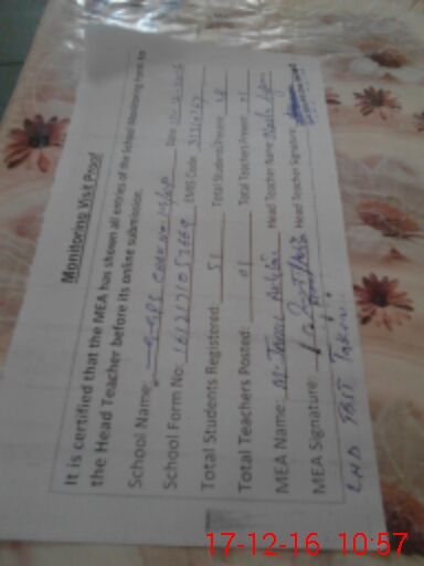 | Certified that this School was Inspected by the Undersigned MEA/DMO Today and the Information Stated Above is as Per Record. | |||||