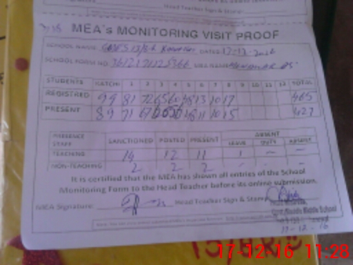 | Attendance Register | Head Teacher | MEA with School | Visit Proof |