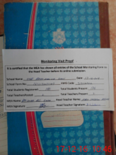 | Attendance Register | Head Teacher | MEA with School | Visit Proof |
