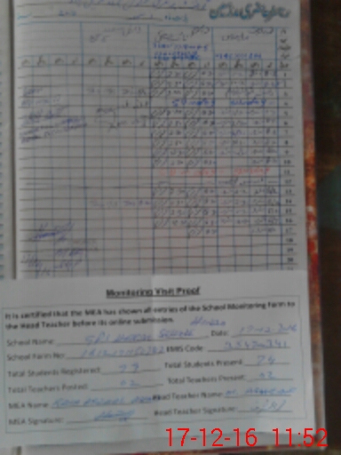 | Attendance Register | Head Teacher | MEA with School | Visit Proof |