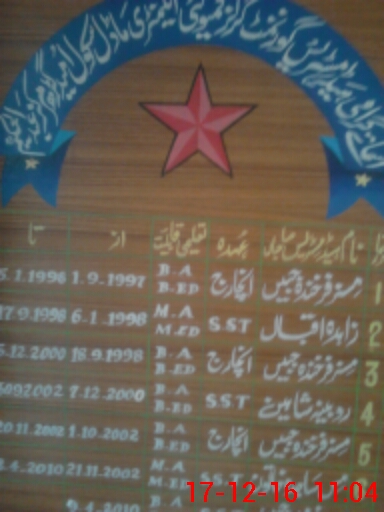 | District: KHANEWAL | Tehsil: KABIRWALA | Markaz: GOBIND GARH - FEMALE | Level: Middle | |