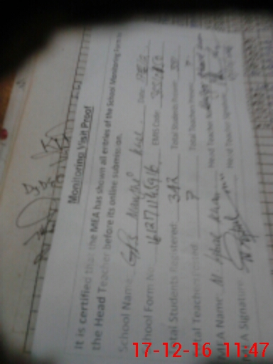 | Certified that this School was Inspected by the Undersigned MEA/DMO Today and the Information Stated Above is as Per Record. | |||||