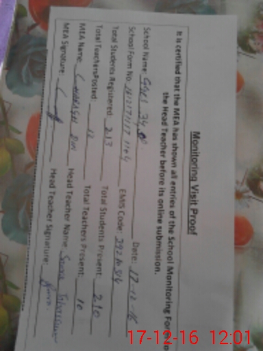 | Certified that this School was Inspected by the Undersigned MEA/DMO Today and the Information Stated Above is as Per Record. | |||||