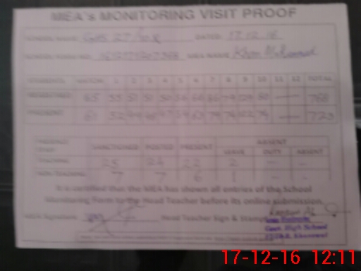 | Attendance Register | Head Teacher | MEA with School | Visit Proof |