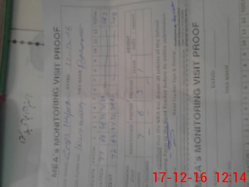 | Attendance Register | Head Teacher | MEA with School | Visit Proof |