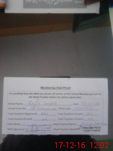 | Attendance Register | Head Teacher | MEA with School | Visit Proof |