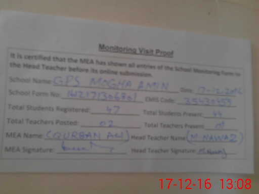 | EMIS Code: 35430459 | Name of School: GPS MOGHA AMEEN | |||
