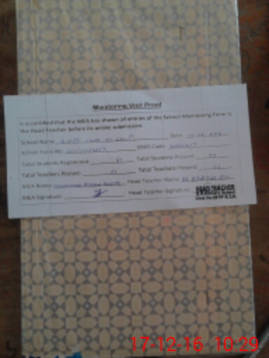 | Attendance Register | Head Teacher | MEA with School | Visit Proof |