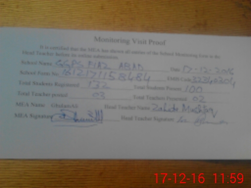| Certified that this School was Inspected by the Undersigned MEA/DMO Today and the Information Stated Above is as Per Record. | |||||