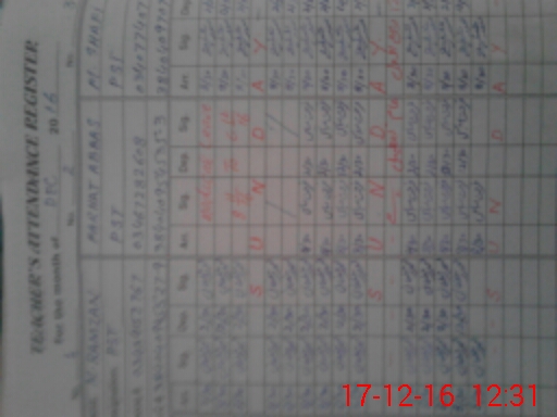 | CNIC | Full Name | Designation | R/C | Absence During Last Calender Month |