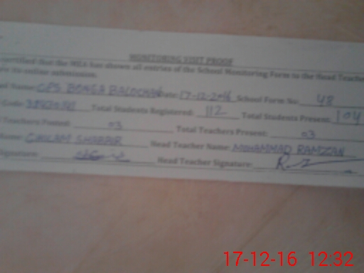 | EMIS Code: 38430141 | Name of School: GPS BONGA BALOCHAN | |||