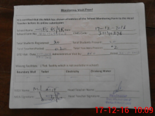| Certified that this School was Inspected by the Undersigned MEA/DMO Today and the Information Stated Above is as Per Record. | |||||