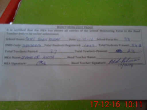 | Certified that this School was Inspected by the Undersigned MEA/DMO Today and the Information Stated Above is as Per Record. | |||||