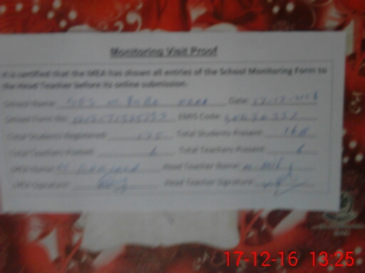 | Certified that this School was Inspected by the Undersigned MEA/DMO Today and the Information Stated Above is as Per Record. | |||||