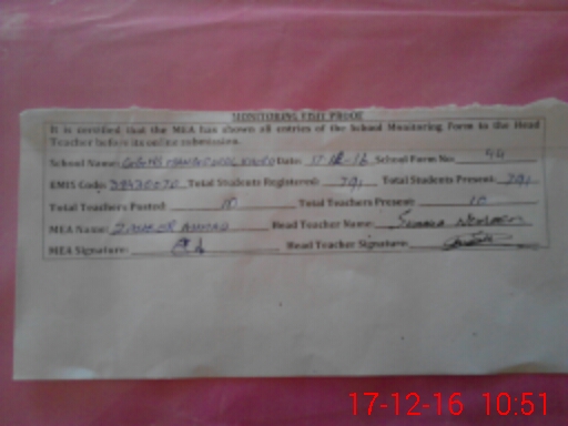 | Attendance Register | Head Teacher | MEA with School | Visit Proof |