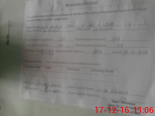| Certified that this School was Inspected by the Undersigned MEA/DMO Today and the Information Stated Above is as Per Record. | |||||
