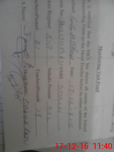 | Total no. of Classrooms: 15 No. of Classrooms Used for Teaching: 11 No. of Classrooms Storing Old Furniture, FTBs, etc: 0Comments if Any: 4 class room dangrous |