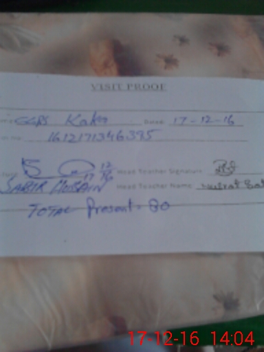 | Attendance Register | Head Teacher | MEA with School | Visit Proof |