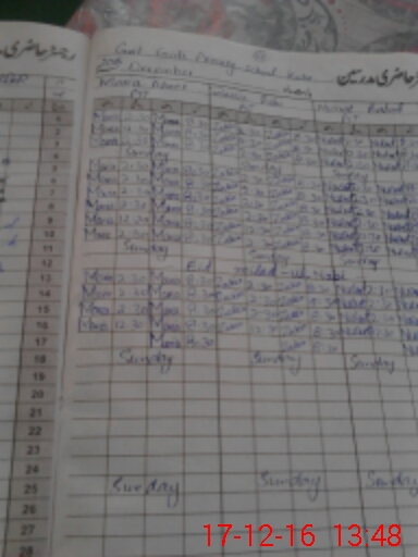 | CNIC | Full Name | Designation | R/C | Absence During Last Calender Month |