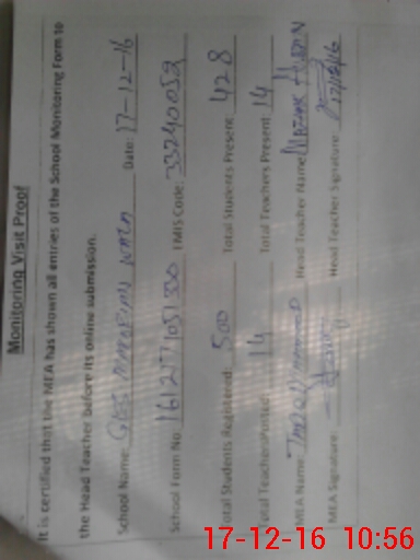 | Certified that this School was Inspected by the Undersigned MEA/DMO Today and the Information Stated Above is as Per Record. | |||||