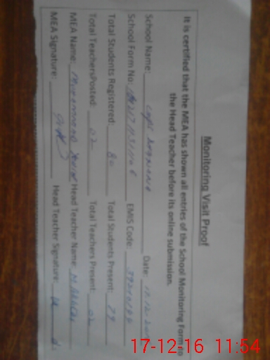 | Certified that this School was Inspected by the Undersigned MEA/DMO Today and the Information Stated Above is as Per Record. | |||||