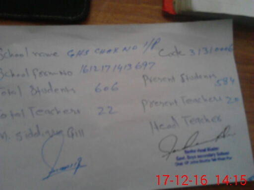 | EMIS Code: 31310006 | Name of School: GHS CHAK 1/P JETHA BHUTTA | |||