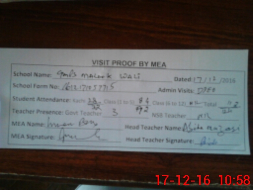 | EMIS Code: 32430158 | Name of School: GGPS MALOOK WALI | |||