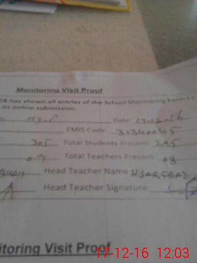 | Certified that this School was Inspected by the Undersigned MEA/DMO Today and the Information Stated Above is as Per Record. | |||||