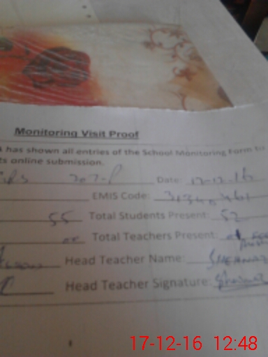 | Attendance Register | Head Teacher | MEA with School | Visit Proof |
