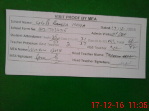 | EMIS Code: 32430195 | Name of School: GGPS BANGLA ICHHA | |||