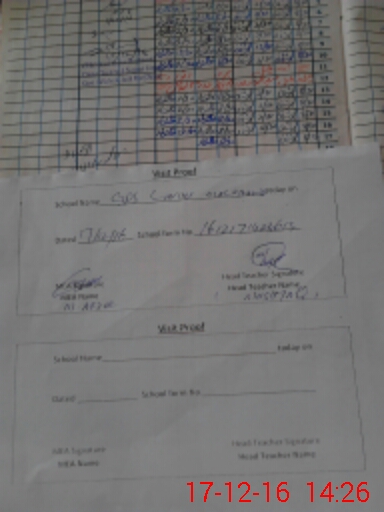 | Attendance Register | Head Teacher | MEA with School | Visit Proof |