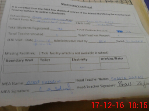 | Certified that this School was Inspected by the Undersigned MEA/DMO Today and the Information Stated Above is as Per Record. | |||||