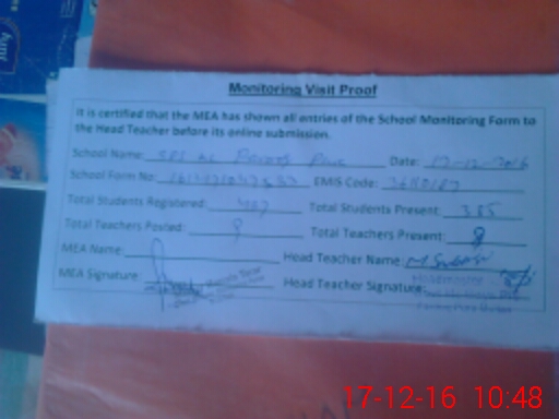 | Attendance Register | Head Teacher | MEA with School | Visit Proof |
