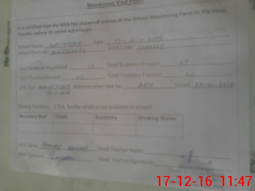 | Certified that this School was Inspected by the Undersigned MEA/DMO Today and the Information Stated Above is as Per Record. | |||||