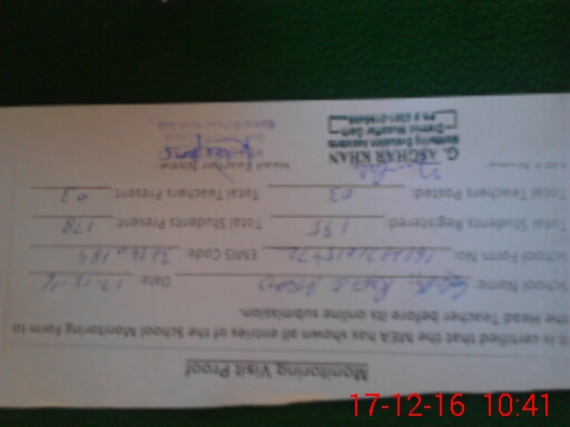 | Attendance Register | Head Teacher | MEA with School | Visit Proof |