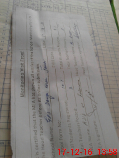 | Attendance Register | Head Teacher | MEA with School | Visit Proof |