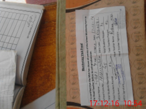 | Attendance Register | Head Teacher | MEA with School | Visit Proof |