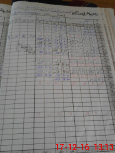 | CNIC | Full Name | Designation | R/C | Absence During Last Calender Month |