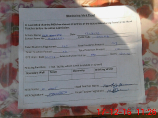 | Attendance Register | Head Teacher | MEA with School | Visit Proof |