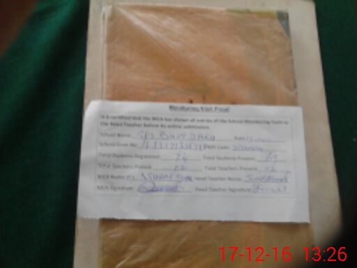 | School Visited by School Health & Nutrition Supervisor (No. of Visits) | 1 | Name1: | Abid Hussain | Name2: | Nil |