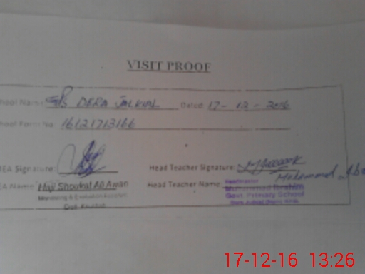 | EMIS Code: 38210386 | Name of School: GPS DERA JALKIAL | |||
